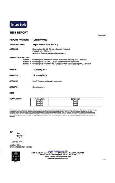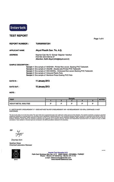 Akyol Plastic owns the certificate of the world’s most recognized quality management standard ISO-9001-2000. The standard is based on a number of quality management principles including a strong customer focus, the motivation and implication of top management, the process approach and continual improvement. Using ISO 9001:2000 helps ensure that customers get consistent, good quality products and services, which in turn brings many business benefits.Pvc Test Reports